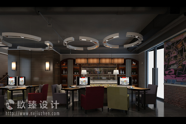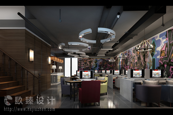同時,設計師在網(wǎng)咖功能分區(qū),以人性化的服務理念為主,旨在為大家打造愉悅空間,設計師希望通過不一樣的風格,為大家?guī)硐硎芎褪孢m的空間。在燈飾上,設計師采用富有個性的燈,也讓整個網(wǎng)咖看起來富有個性。