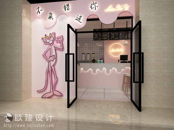 不能錯過你奶茶店的門頭都采用鮮亮的品牌主打色調粉色,上面印著不能錯過你的品牌名和一只可愛的粉紅豹,凸顯出奶茶店的特色。門頭是一家店鋪的臉面,采用明亮的色彩讓人第一眼就印象深刻,就能吸引更多的顧客。同時,整個店的裝修風格為現代簡約風格,簡約的線條,時尚的造型,流行的色彩,讓人感受自由的氣氛,更能激發天馬行空的想象力。