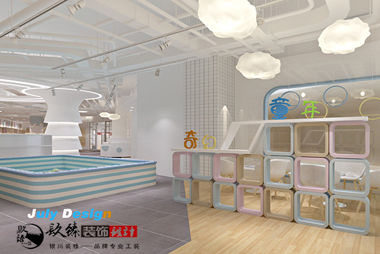 在本套方案中,分為了產(chǎn)品展示區(qū),娛樂(lè)區(qū),收銀區(qū),還有一個(gè)大的區(qū)域,就是銀川母嬰店裝修設(shè)計(jì)|銀川裝修網(wǎng)嬰兒游泳區(qū),這里用玻璃作為隔斷,很清楚的讓外面等候的家長(zhǎng)們看到了里面寶寶游泳的場(chǎng)景,滿(mǎn)是溫馨的畫(huà)面。