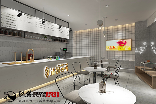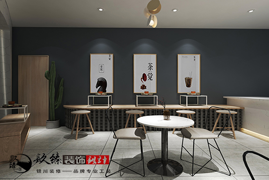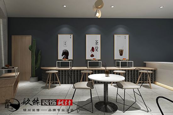 銀川奶茶店裝修|镹臻裝飾|銀川裝修網|銀川裝修公司|在墻壁上適當做一些裝飾,這樣就不會顯得北歐風格裝修太過單調,選擇了一些具有北歐風格的小物品來點綴,例如木質墻壁書架以及創意小雕塑來加以配飾,靈活更顯輕松隨性。 多種暖色調的融合,讓餐廳氛圍立刻活躍起來,奶茶店門頭的背景墻和店內的墻體顏色使用了差不多色調的淺灰色,這樣相互映襯,更有銜接感,其中一面墻,銀川裝修|銀川裝修設計|銀川裝飾設計|銀川裝修公司|設計師高鳳林使用了深灰色,為了不顯單調,特意用了白色文藝的裝飾畫做為配飾,瞬間設計感爆棚。空間層次分明,具有線條感,這樣使得整體奶茶店非常的整潔、大方。因為奶茶店面積只有50平方米,所以在除了操作間以外,銀川奶茶店裝修設計設計師并沒有使用過多的家具去占用空間,反而是用了比較簡約,時尚的家具配飾。