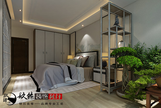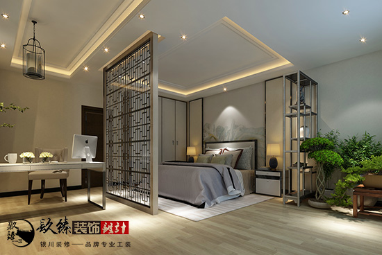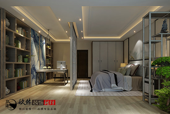 銀川裝修公司镹臻裝飾,書香四溢新中式別墅臥室裝修設(shè)計(jì)