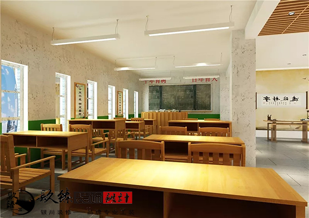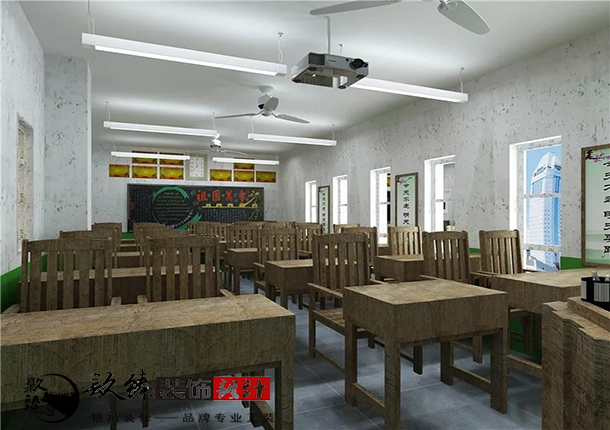 本案例教室內突出一種懷舊之情,時刻提醒著不忘初心使我們牢記使命,十年育樹,百年育人,雖然我們生活在衣食無憂的21世紀,但是我們仍然不能忘記上一代優秀學者們為我們艱苦創造的美好。銀川裝修公司镹臻裝飾校友室設計的風采墻向大家展示了該校嚴以律己的美好品德,樂學睿思,勤勉致知良好學風。