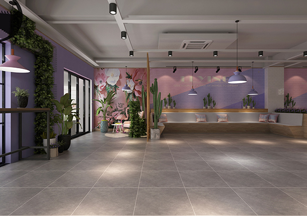 看到墻壁上的粉色和紫色就知道這是什么店鋪了,這樣的甜品店裝修設計案例相信誰都會喜歡,粉色溫馨甜蜜和紫色浪漫唯美的墻壁搭配白色工字磚,既有甜美可愛也有文藝氣質,坐在這里喝杯下午茶應該很享受。