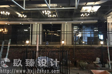 二樓用餐區也已經初步完成,期間包括壁燈、造型吊燈、造型吊頂的施工裝修。通過經驗豐富的工長和在不斷對照施工圖紙進行施工交接工作,并且細心測量尺寸后裝修而成的工業風格酒吧已經完美呈現了。