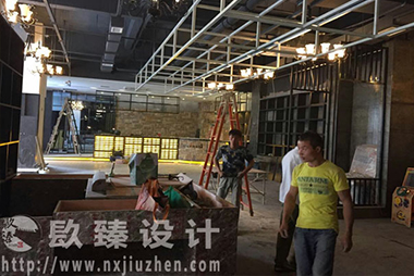 寧夏林德曼佐餐酒吧中,工人們正在用餐區裝修大理石臺面和天花改造工程。走廊過道處,工人們正在用工業風格十足的乳膠漆、文化磚裝飾墻壁,并且進行一系列精細而巧妙的壁燈裝飾、鐵架鋼管天花造型、造型吊燈在工人們的配合裝修下,已經完美展現在人們眼前了。