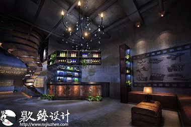 光看圖片暗色系的裝飾給人以不真實的感覺,用清水混凝土、鋼、原木等自然物架構打造內部空間,局部綠植的點綴,冷暖色調的反差對比,給人以夢幻的感覺,并營造出復古懷舊的浪漫氣氛,也更好地強調了設計的主題。粗糙的水泥抹平地面是粗狂的,然而藍紫色燈光又給了這片空間一種妖艷的視覺感受。