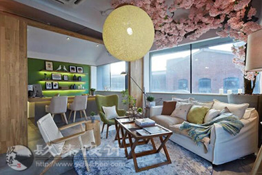 藤球吊燈集合花藝,一幅唯美的月上枝頭畫面映入眼簾。夕陽斜入,空間充滿慵懶清新的氣息,進入夜晚,人們在溫馨的燈光下聚會,空間充滿歡樂的氣氛。