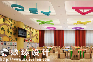 在孩子們的世界當中,眼前所有的事物都是清新和明媚的,在本案設(shè)計當中,將風格定位于現(xiàn)代簡約風格。因為整體色調(diào)主要以簡約清新的水果綠和水果黃刷漆作為主色調(diào),為該幼兒園塑造出童話般的世界。設(shè)計師還在室內(nèi)設(shè)計中大膽的引用好多適合孩子們玩耍的娛樂玩具以及充滿像游樂園般的玩耍工具。在設(shè)計過程中一直遵循著要兼顧孩子的生理和心理的健康的原則,全力塑造一個有特色趣味性強,顏色明亮的國際化幼兒園。