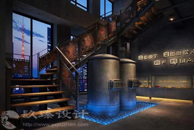 光看圖片暗色系的裝飾給人以不真實的感覺,銀川裝飾公司銀川辦公室裝修設計用清水混凝土、鋼、原木等自然物架構打造內部空間,局部綠植的點綴,冷暖色調的反差對比,給人以夢幻的感覺,并營造出復古懷舊的浪漫氣氛,也更好地強調了設計的主題。粗糙的水泥抹平地面是粗狂的,然而藍紫色燈光又給了這片空間一種妖艷的視覺感受。