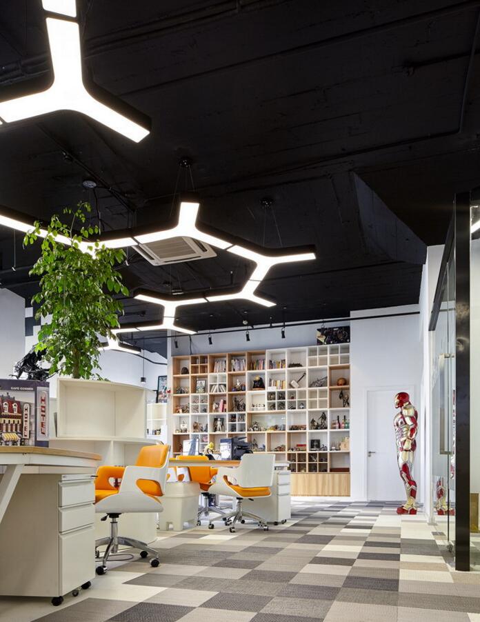 設(shè)計(jì)師從影視中的“像素”這一概念出發(fā),將極具影視文化色彩的“馬賽克”元素巧妙地置入辦公區(qū),呈現(xiàn)了一個(gè)折疊互現(xiàn)的多維創(chuàng)意空間。