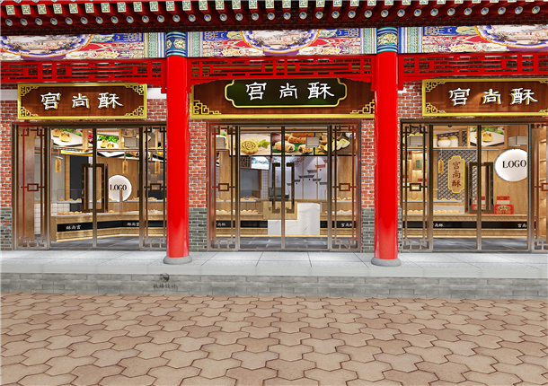 中式風格的建筑分為很多種,宮廷風格的店面裝修風格并不是很常見,通常我們見過的糕點店面都是法式風或者現代風的。銀川餐廳裝修|銀川餐廳裝修設計|镹臻裝飾小編今日為大家帶來宮廷風的糕點店面設計案例。本案例位于銀川市中山街與解放街交叉口,面積為200平方米,中式糕點一直以來備受喜愛,其口味酥軟,在遙遠的古代,都是以糕點為重要食物的。根據產品本身的特點,將本案設計為宮廷風格十分符合產品本身。品牌的展示在店面中非常重要,美好的食物需要精致的包裝才能更顯品位。
