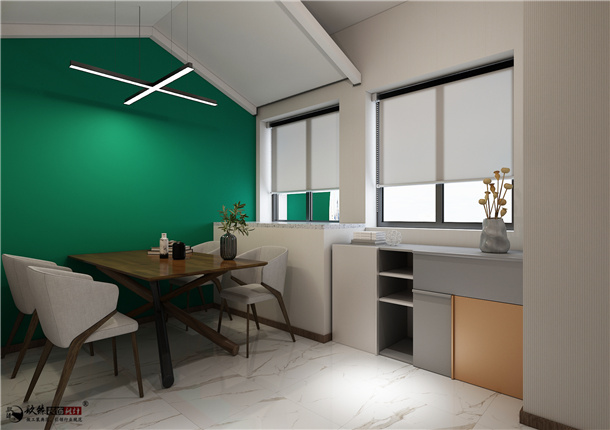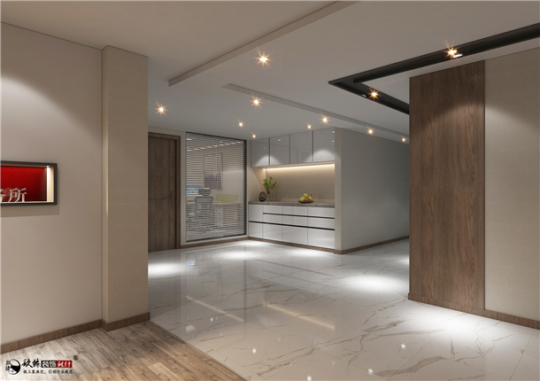 對于律師事務所裝修的印象,都會想到是一個嚴謹、認真、細心的高大的地方,如:采用灰色、黑色、白色等顏色呈現出一個莊嚴神圣的法律形象。本案在裝修過程中加入多元化元素,讓事務所更加柔和。律師事務所的秩序感指的反復、節奏、完整和簡潔。正是運用這一基本理論來創造一種安靜、平和與整潔環境。秩序在辦公室裝修中起著關鍵性的作用。