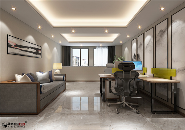 公共辦公區(qū)是辦公室的心臟,也是整個(gè)裝修設(shè)計(jì)的重點(diǎn)。設(shè)計(jì)裝修時(shí)不僅需要注重美觀性,實(shí)用性,整體性在整個(gè)裝修設(shè)計(jì)上更是重中之重。更尤為重要的是辦公區(qū)的燈光,既不能太強(qiáng)又不能太弱。 因此在設(shè)計(jì)色彩上主要以白色為基調(diào),頂部采用簡單的吊頂,并用現(xiàn)代風(fēng)格掛畫來裝飾,不僅使得整個(gè)空間顯得開闊明亮,還讓辦公空間多了一份文藝氣息。
