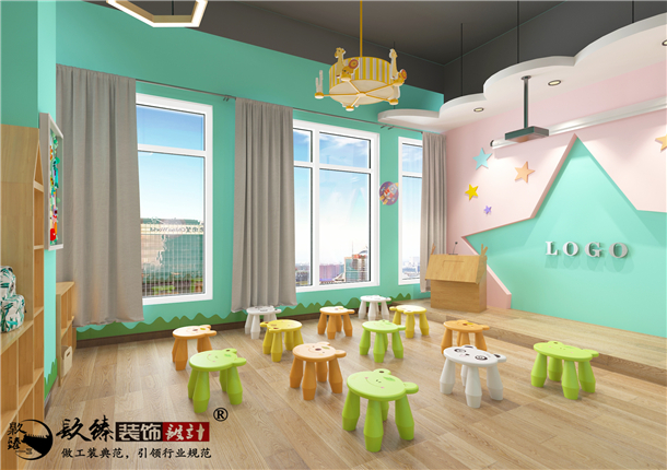 兒童教室與青少年教室的區別不僅在色彩上采有暖色調,更體現在墻 面造型上,設計師主要在這里聽客戶講自己細化的事物,在不斷接觸新事物的同時,孩子們也在不斷的成長、脫變,憧景著美好的未來.