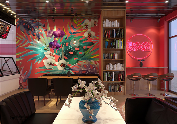 本案例整個(gè)內(nèi)部結(jié)構(gòu)嚴(yán)密緊湊、空間穿插有序、圍護(hù)各界面要素的虛實(shí)構(gòu)成要比較明顯,等候區(qū)通過(guò)虛實(shí)互換的空間形象,取得局部與整個(gè)空間的和諧。現(xiàn)代咖啡廳的設(shè)計(jì)不僅要有文藝的感覺,還要讓顧客有種視覺美,通過(guò)視覺體驗(yàn)帶給人美好的食欲,裝修風(fēng)格既要有復(fù)古氣息也要有文藝氣息,整體設(shè)計(jì)以柔美時(shí)尚的色調(diào)而成,在點(diǎn)綴著好看的花朵,法式文藝氣息彰顯的淋漓盡致。