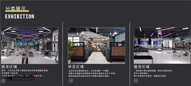 運動區域以深色系為主,給人一種壓迫感,從而通過不斷的運動來釋放壓力。 休閑區域就要給人一種明亮的感覺,多使用射燈和白熾燈來提升空間亮度,動感單車等區域采用彩燈來營造氣氛。練操房的整體空間比較大,給健身的人感覺很遼闊,在練操房安裝了一張大面積的鏡子,用來加強健身時氣氛和效果。