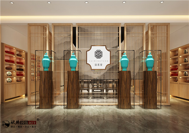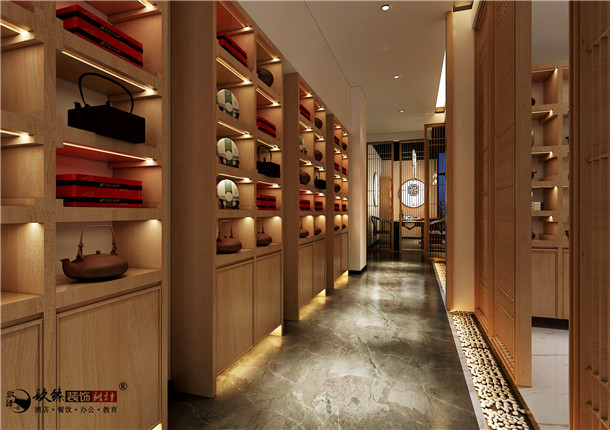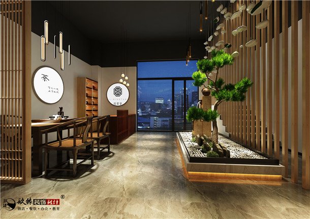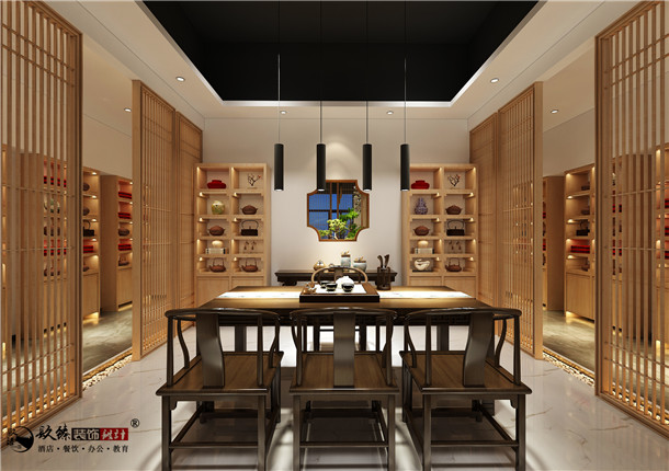 在本案茶室裝修設計中,裝修的主題需要持續不斷有所變更。茶室中的擺設,無疑增加了茶室整體的觀感。