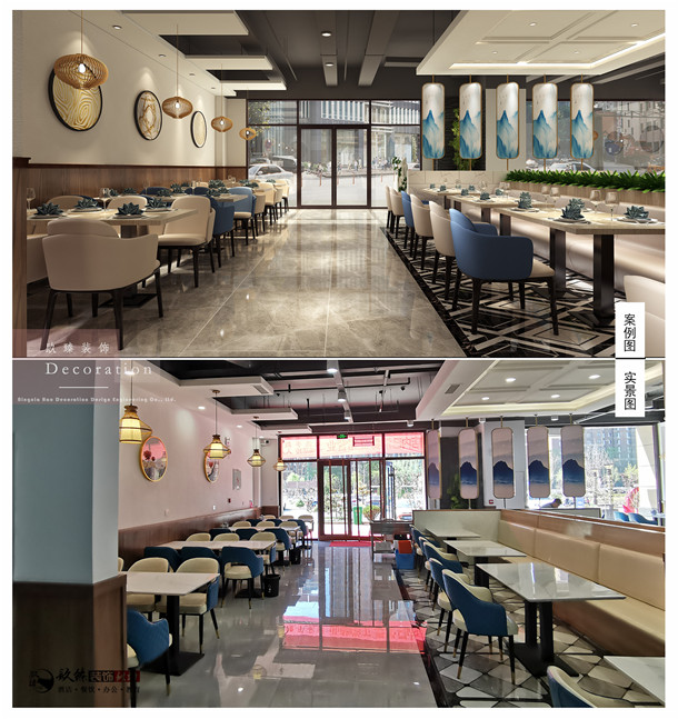 本案改造重點集中的規劃將吧臺、門頭拆除,以便重新規劃; 新建小塊墻體 ,使得空間更加規整,同時形成餐廳整體區域劃分。 由于空間充足,通過新建墻體 ,打造中式細膩感,餐廳空間更加合理。