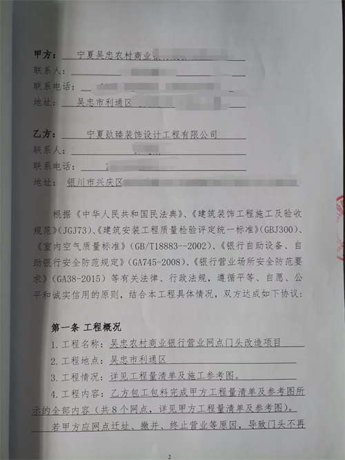 吳忠市商業銀行裝修項目簽約镹臻裝飾,合作愉快! |
